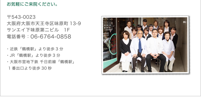 〒543-0023 大阪府大阪市天王寺区 味原町13-9 サンエイ下味原第二ビル 1F Tel:06-6764-0858
